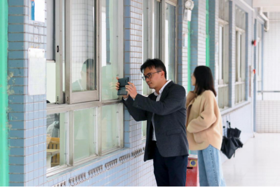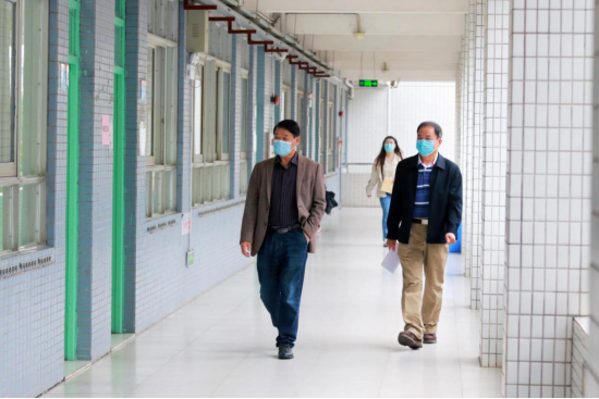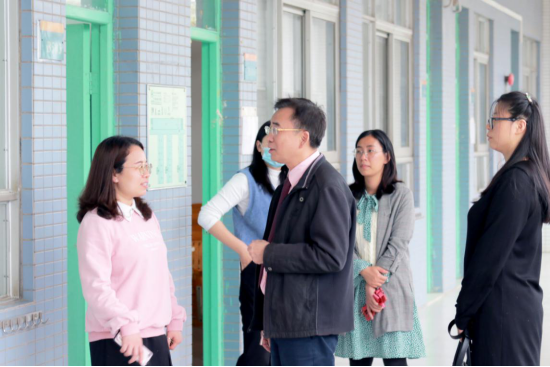 我校校长王庭槐多次停下脚步,认真倾听教师的授课内容,观察同学们在课堂上的学习情况。每到一个班级,王庭槐校长都细心提醒教务工作人员,要严格按照学校部署做好校园疫情防控工作,授课期间保持常开窗户自然通风,为广大师生营造安全放心的学习环境。
