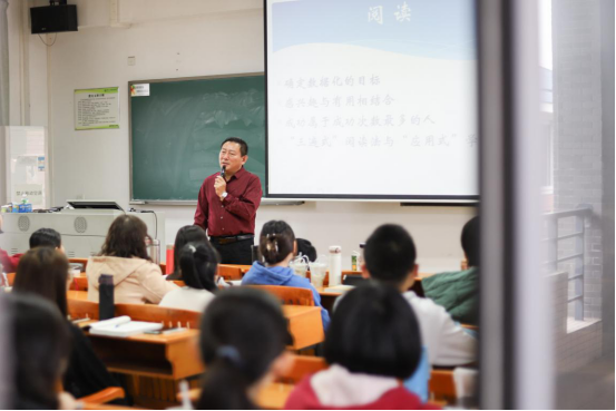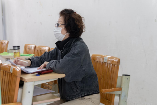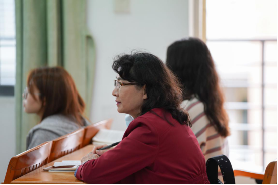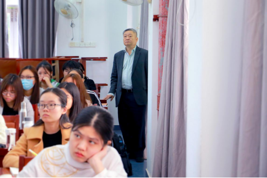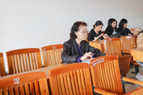 陈小枫督导来到中国语言文学系的课堂,认真听课并写下课堂记录