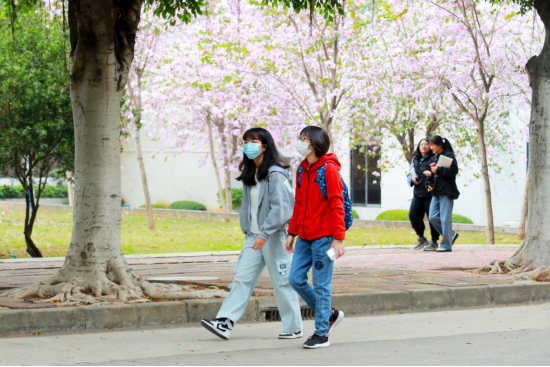 “若待上林花似锦,出门俱是看花人”。风铃木上的小黄花随风轻舞,宫粉紫荆也迎来盛花期,校园里密密层层的花儿宛若灿烂的银河,引得不少师生驻足欣赏。在春和景明的新学期里,新华人充满希望,奋力向前,以斗志昂扬的姿态拥抱新学期,用青春和汗水书写全新的人生华章。