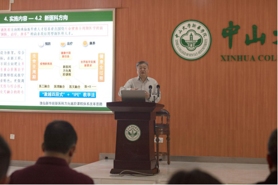 王庭槐教授作《“四新”建设背景下的人才培养创新——逸仙新华班人才培养模式的探索与实践》课题开题汇报