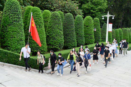 教职工党员同志沿烈士墓道缓步向前、拾级而上