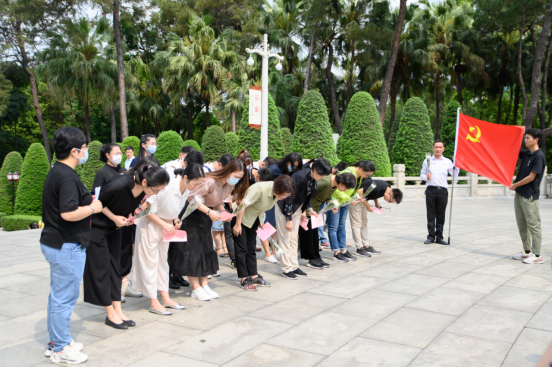 为深入推进党史学习教育,使全体党员同志做到学史明理、学史增信、学史崇德、学史力行,4月1日上午,在清明节前夕,学校党委工作系统第一、第二党支部,以及校办、党办与档案馆党支部联合组织教职工党员同志赴广州起义烈士陵园联合开展“学习百年党史、缅怀革命先烈”清明祭奠英烈主题党日活动,锤炼党性修养,凝聚奋进力量。三个支部共30余名同志参加活动,校党委书记周云同志、校纪委委员秦荔同志以普通党员身份参与活动。