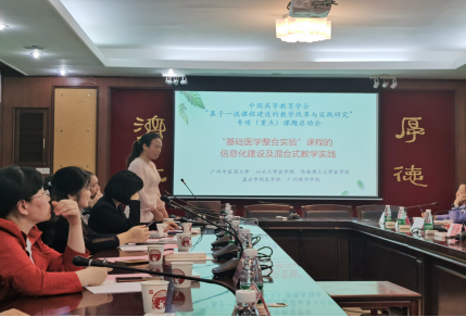 4月17日下午,中国高等教育学会“基于一流课程建设的教学改革与实践研究”重点课题——“‘基础医学整合实验’课程的信息化建设及混合式教学实践”课题启动会在广州中医药大学三元里校区办公楼会议室顺利召开。该项目由广州中医药大学牵头、广东省内五所高校联合申报。其中,广州新华学院为该项目团队中的唯一一所民办院校。