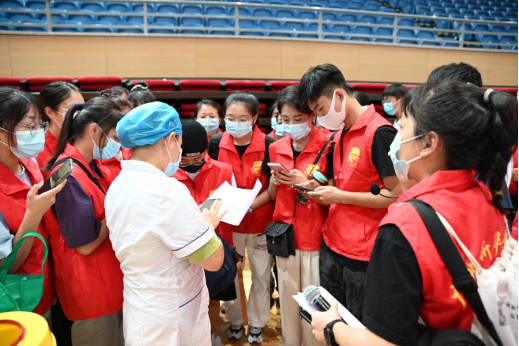 尽管夏季高温炎热,腿酸脚麻,工作量巨大,但志愿者们依旧热情饱满,怀揣着奉献的心,秉承着严谨认真的态度进行协助工作。检测现场,志愿者们积极主动地为同学们答疑解惑,指引其前往检测地,维持现场秩序,并耐心安抚同学情绪,相互勉励。