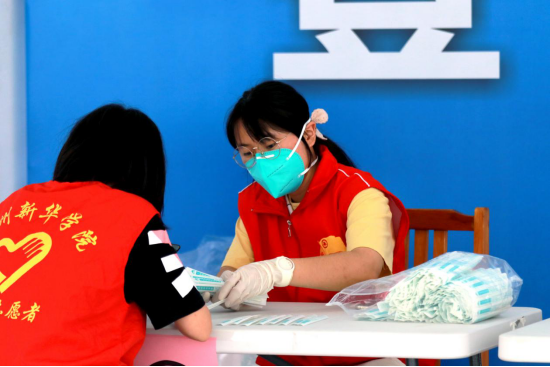 在协助医护人员进行核酸检测的过程中,志愿者们出色地完成维持核酸检测现场秩序、信息登记等工作,志愿服务工作保质保量,充分彰显志愿力量、新华速度。