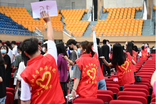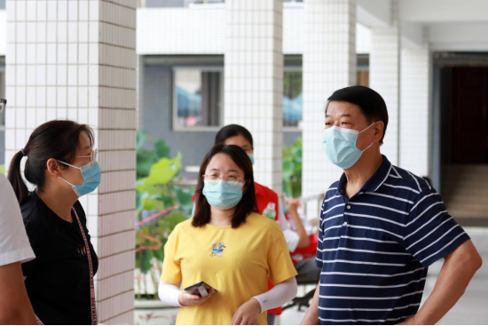 6月5日早上7时,在广州校区对上岗志愿者进行岗前培训和分工,确保志愿者熟悉工作要求