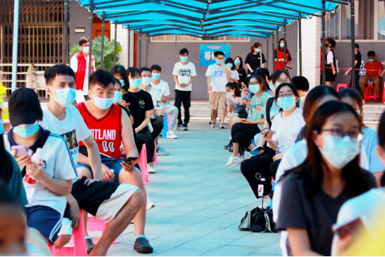 校办林淑梅老师:学校自接到全员核酸检测任务后,当晚立即号召志愿者行动起来。经过16小时的运筹谋划,每个班建立了微信群,所有志愿者分工明确,分组分岗位,完成了现场维护秩序和扫码登记等工作。排队登记秩序井然,检测现场有条不紊,在下午4点钟左右就完成广州校区核酸检测任务。志愿者的热情付出、超强的战斗力彰显了志愿者无私奉献的精神,为我校的志愿者们点赞!