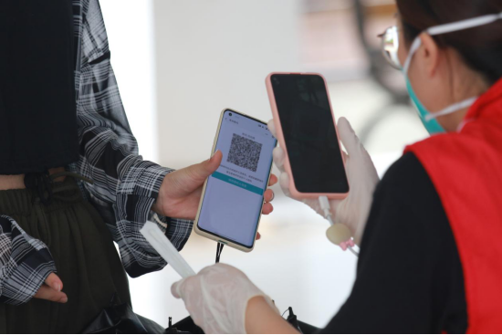 学生志愿者扫描学生“粤核酸”二维码确认信息