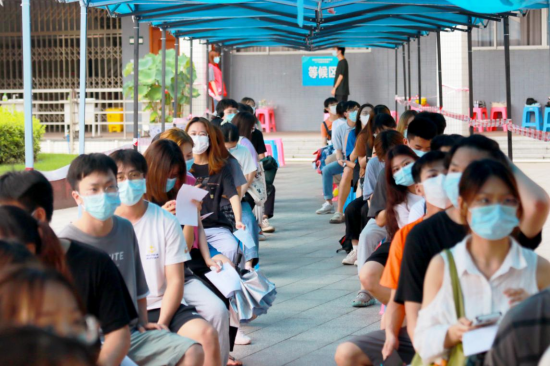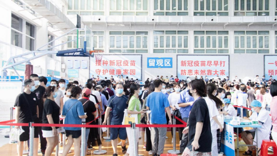 2020级殷孟杰同学认为,接种现场的高效率与良好秩序,离不开学校、工作人员和医护人员的共同努力。学校在不影响我们正常上课的前提下和相关部门商议接种时间,为师生顺利接种疫苗打下了坚实的基础;医护人员一丝不苟、毫不松懈地为我们接种疫苗,额头上布满汗水和湿透了制服的样子是他们最动人的模样;现场的工作人员维持现场秩序,为师生保驾护航,保障了接种疫苗工作有序进行。
