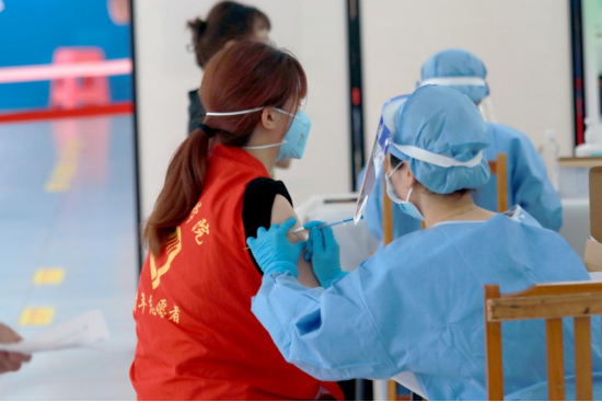 学生志愿者为新冠疫苗第二针接种工作顺利完成点赞