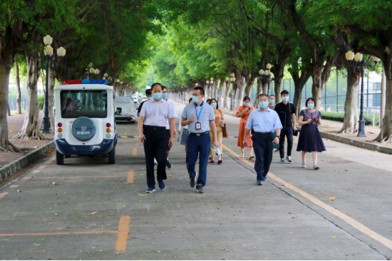 为确保严守疫情防线,落实落细疫情防控措施,维护平安健康校园,6月10日,由天河区新冠肺炎疫情防控指挥部办公室教育防控组带队,联合区卫健局、市场监管局、街道等有关部门组成的联合督查组对我校广州校区疫情防控各项工作进行实地指导。我校疫情防控办公室成员及相关职能部门负责人陪同检查,并与联合督查组进行座谈交流。