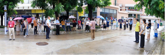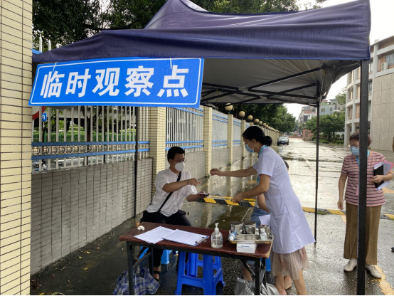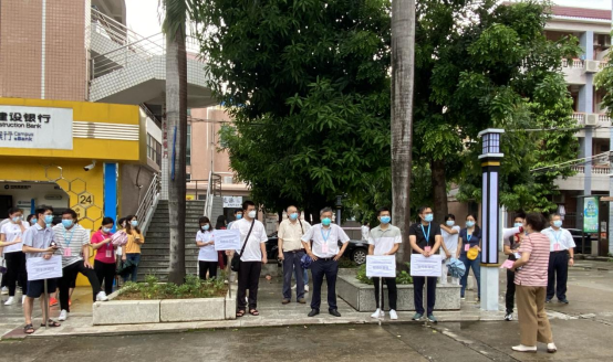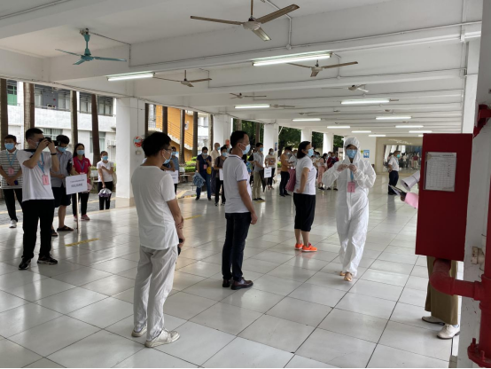8月15日下午,我校在广州校区冒雨开展疫情防控应急演练,根据预先制定的方案,分别模拟三种场景进行应急演练:返校学生进校园时体温异常、课堂教学过程体温异常、学生宿舍突发体温异常。