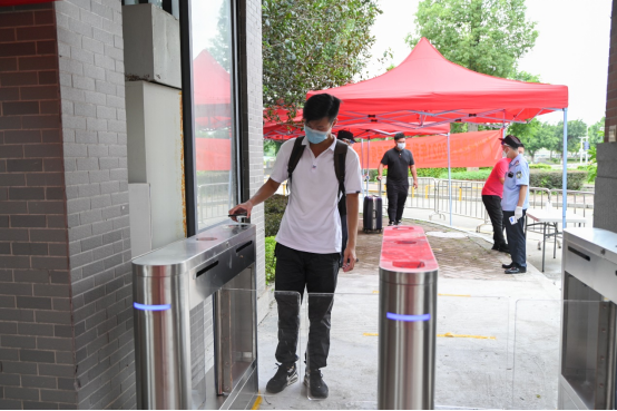 保安查验粤康码、行程卡后,“学生”扫描iXH健康码通过闸机