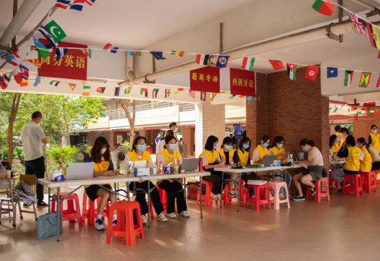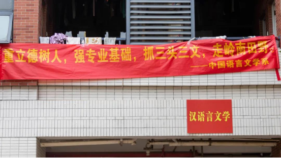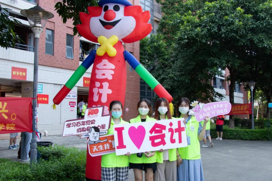 艺术设计与传媒学院充分发挥学科特色,在学院报到点开设小型学生作品展,展出本院学生的书法练习作品及服装设计作品;体育系摆出等比例的易建联人形立牌,尽显专业特色;外国语学院挂满世界各国国旗,将“了解世界文化,传递中国声音,服务区域经济”的育人理念尽显;“你们来了,笑容多了,bug少了”,信息科学学院用体现专业特色的俏皮话语,表达对新生的欢迎;“重立德树人,强专业基础,抓三头三文,走岭南田野”,中国语言文学系的迎新横幅道出了对大一新生的深切期望……