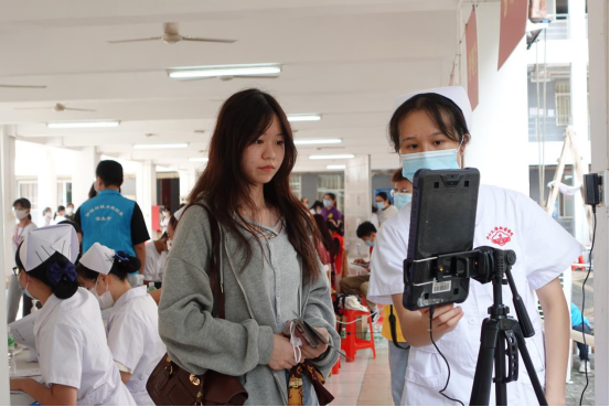 志愿者区莹蔓是一名核酸检测的志愿者。她说,“在疫情防控要求下,我校增加了新生进校园后第一时间完成核酸检测的环节,防疫工作安排得更加细致,同学们和家长们也都更加放心了。”