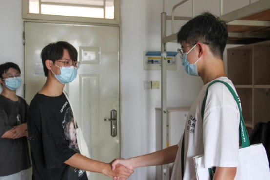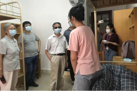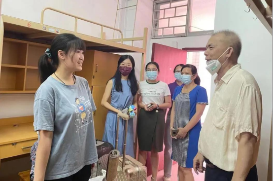 肖化副校长(左三)走访新生宿舍与新生亲切交谈