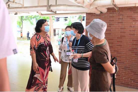 郑穗芬校长助理(右一)在进校门检查处指导工作