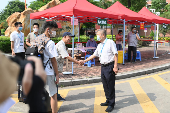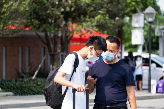 根据疫情防控有关规定,新生报到时谢绝家长陪同入校,家长们纷纷在校门外驻足送别新生。王庭槐校长在校门处迎接新生并与新生家长热情交谈:“家长您好,你们从哪里来呀?辛苦了,请放心把孩子交给学校”。“学校各项措施都很到位,孩子在新华求学,我们很放心”。家长对学校的防疫期间采取的措施表示理解,希望孩子在广州新华学院接受教育和熏陶,成长、成人、成才。
