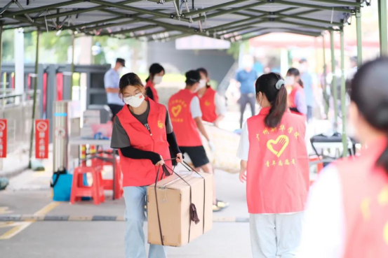 从广州、东莞各大车站的接站服务开始,再到进校指引、行李搬运、陪同报到、入住办理……身着“红马甲”的迎新志愿者穿梭在校园中,成为学校迎新日里一道靓丽的风景线。