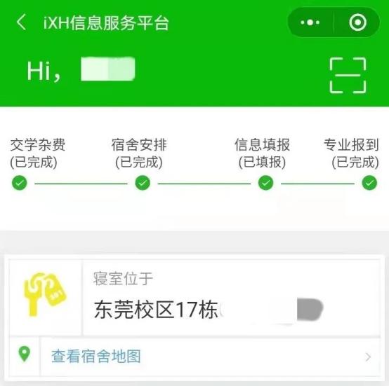 新生报到期间,学校遵循简化流程、方便学生,避免聚集、快速办理原则,信息与网络管理处在iXH小程序推出“一站式”线上迎新服务功能,学生进行线上“云报到”,实现迎新服务事项的“一网通办”。新生提前通过线上办理形式完成缴费、宿舍分配、入校申请等大部分手续,到校后分批、分时段、分区域进行人脸识别、专业报到等少数手续。