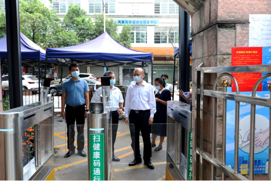李庆松一行到学校校门、图书馆、食堂、学生宿舍、快递寄取点等公共场所以及实验室、健康观察区等专门场所等开展实地检查,仔细查阅校内各场所消杀记录及工作台账等。我校校长王庭槐、党委书记周云作校园疫情防控工作汇报。调研后,李庆松对学校近期疫情防控提出具体指导建议。