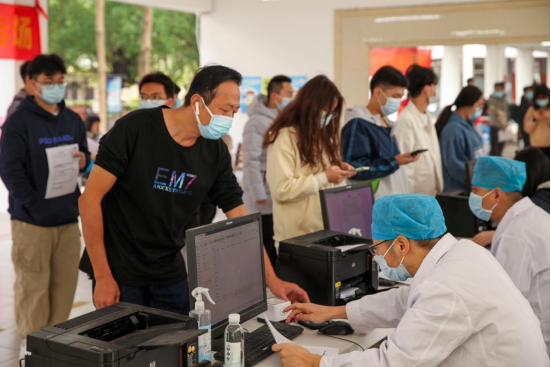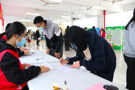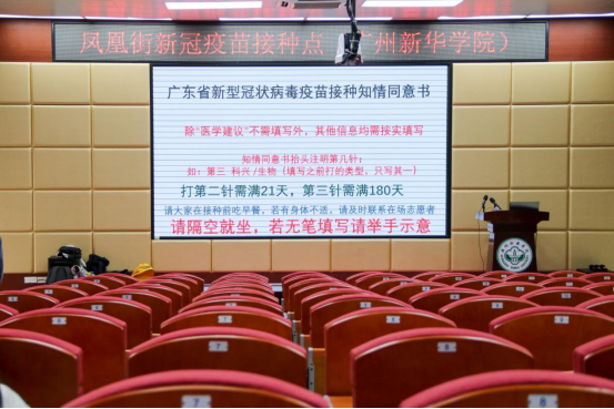 排队等候过程中,在场师生在志愿者、工作人员的指引下依次测量体温、扫码入场,准确填写“广东省新型冠状病毒疫苗接种知情同意书”,再到录入个人信息、接种疫苗、留观等待,直至顺利离场,接种工作整体推进过程平稳、高效、有序。