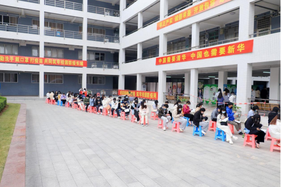 根据广东省教育厅和属地政府部门的疫情防控要求,我校领导高度重视,全方位、多举措严格落实校园各项疫情防控工作,切实扛起校园疫情防控的主体责任、第一责任。接种现场悬挂防疫标语横幅,让广大师生正确认识到接种疫苗“加强针”的重要性和必要性,鼓励全体师生积极接种,全力推动学校接种工作有序进行。