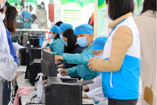 工作人员及学生志愿者为疫苗加强针第三针接种工作提供保障支持