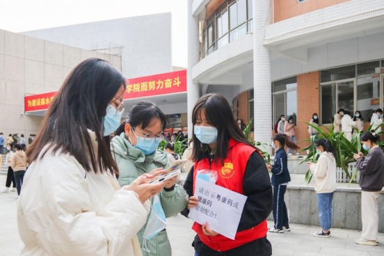 接种师生有序扫码排队入场