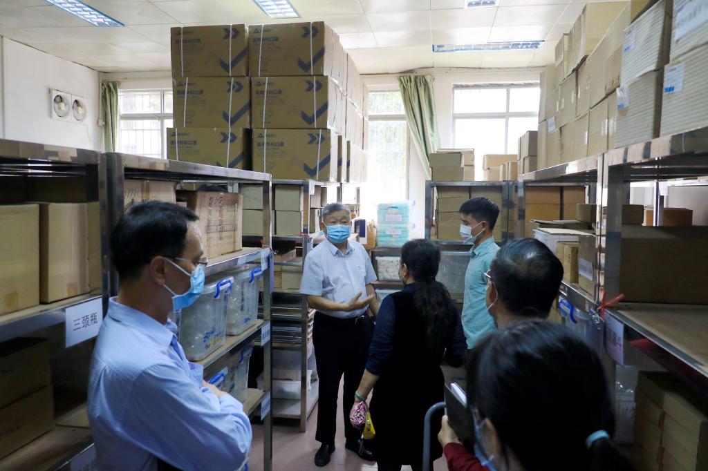 3月15日,王庭槐带领检查组检查校园防疫物资情况