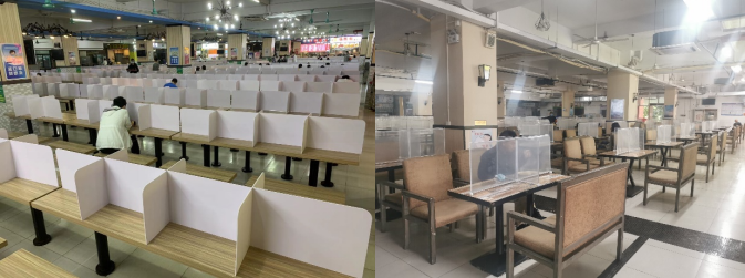 各饭堂在餐桌上加装隔板