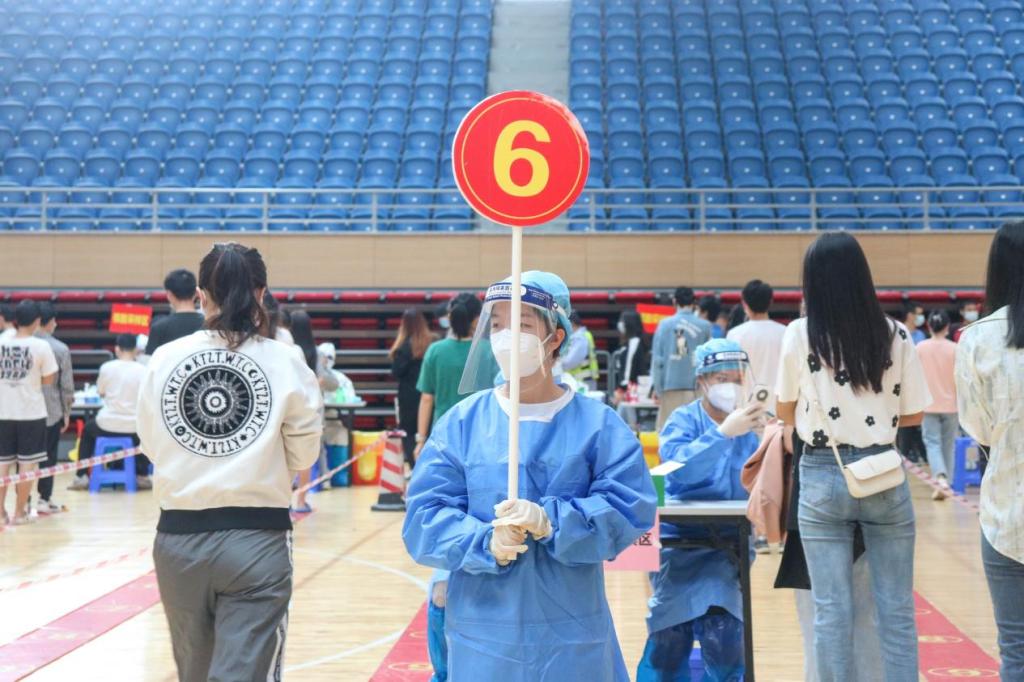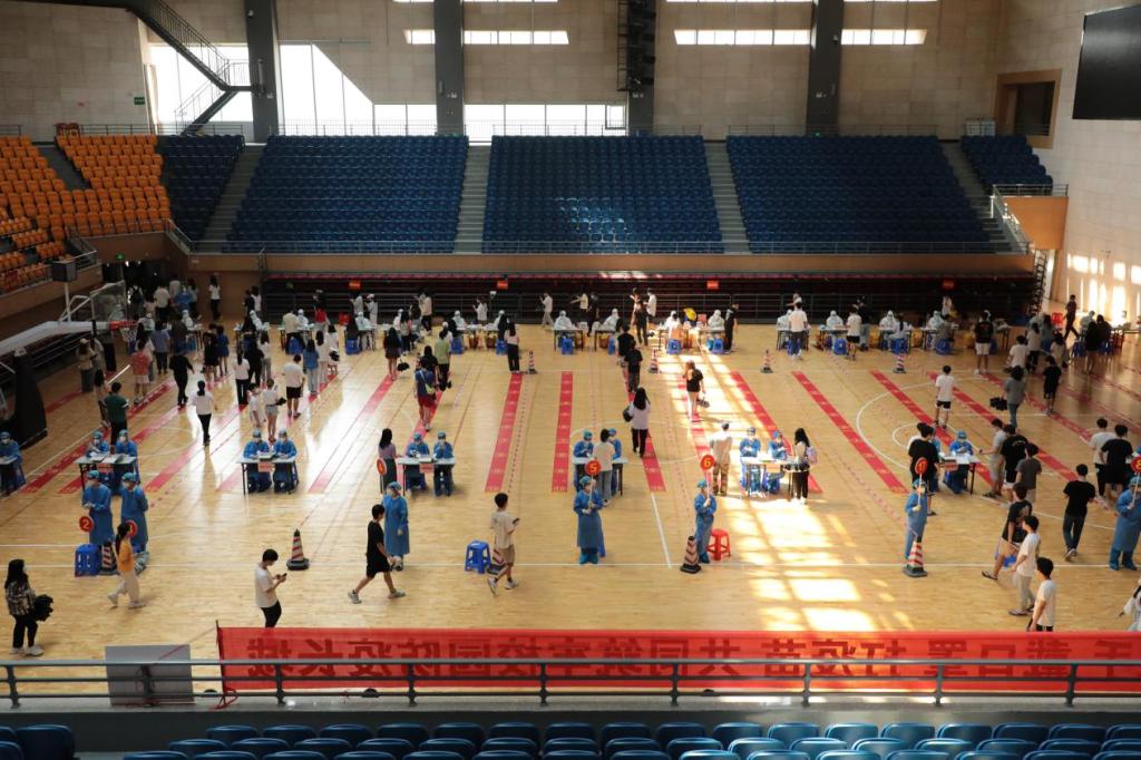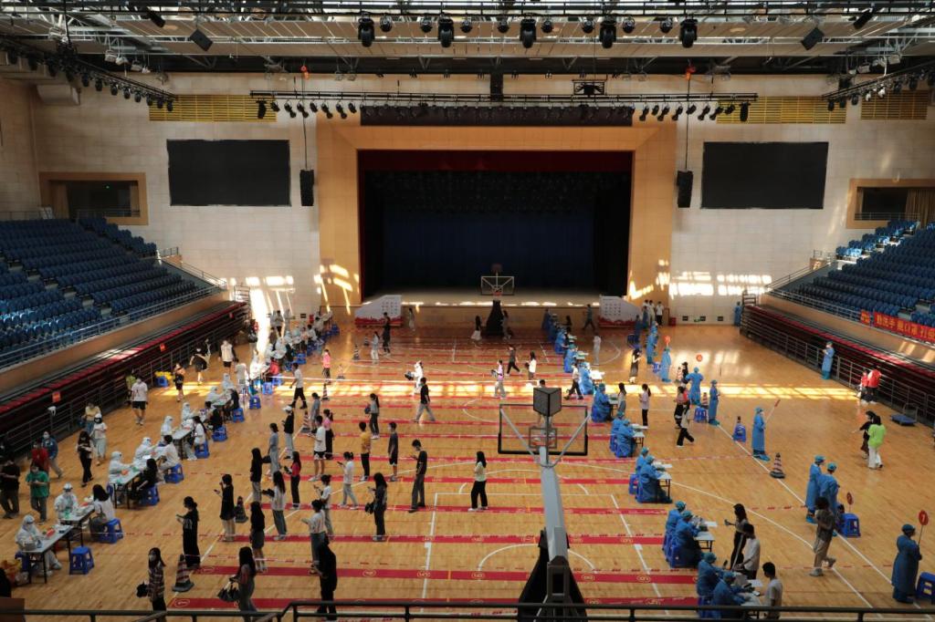 清晨,体育馆内萦绕着悦耳的音乐声,为今天的核酸采样现场增添了一丝别样的温暖。我校工作人员、志愿者与医护人员密切配合,为检测工作的顺利进行提供了坚实的保障。入场师生均做好个人防护措施,有序接受检测,整个采样过程有条不絮、高效快速。