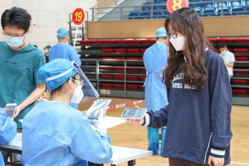 进行核酸检测后,师生扫描ixh健康码后方可离开
