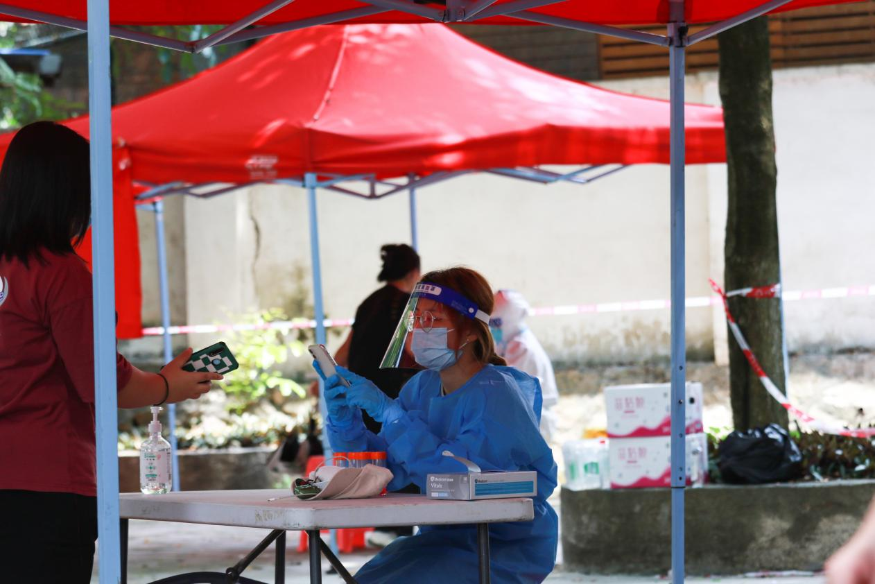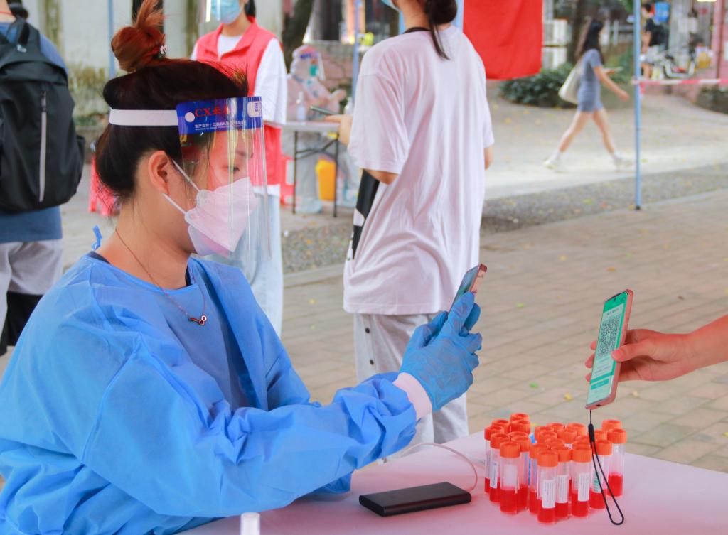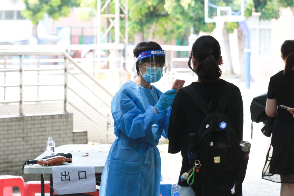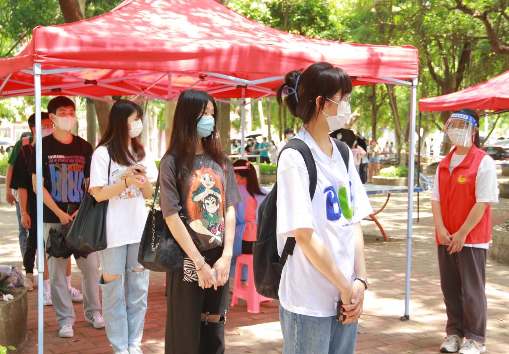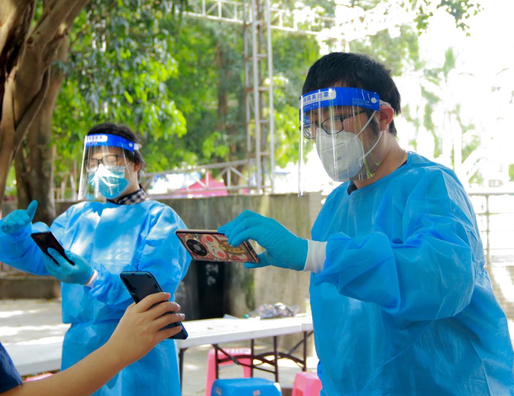 在现场工作人员们的指引下,接受核酸检测的师生们井然有序地排队等待核酸检测。在登记“粤核酸”码后师生有序进入采样区,由医护人员进行核酸采样,医护人员一丝不苟地做好每一样工作,洗手、拆核酸检测棉签、咽喉拭子取样,现场高效有序。核酸检测结束后,志愿者们对所有采样人员进行ixh健康码检测,确保学校全员核酸检测不漏一人。