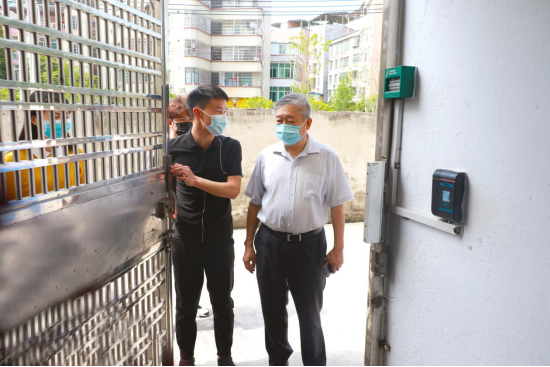 王庭槐校长仔细检查东区宿舍楼门禁系统