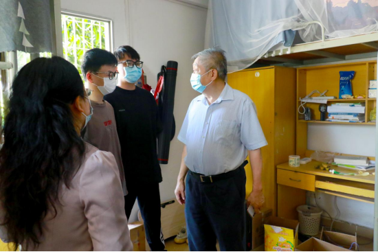 王庭槐校长在学生宿舍慰问学生并检查各项防疫措施落实情况