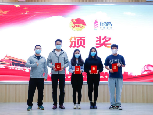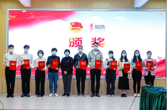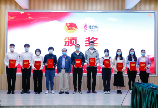 校团委书记代亮(左一)为2021年度“新华好青年”入围奖获得者颁奖