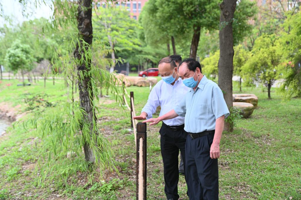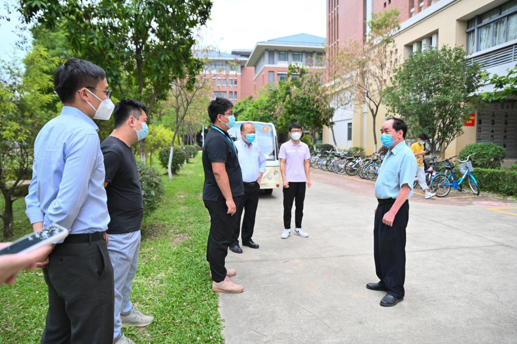 党委副书记、副校长蓝永金(右一)组织相关职能部门负责人进行校园安全检查工作