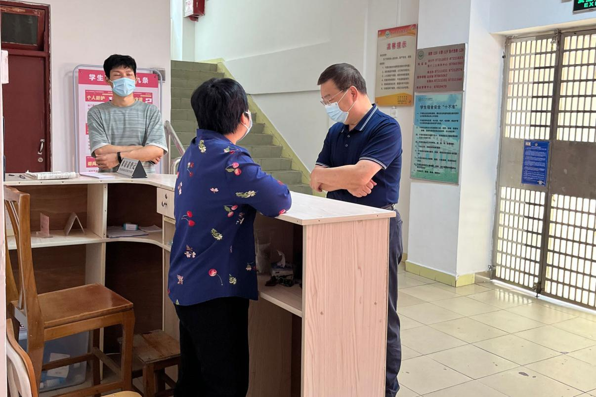 检查组带队到校门门岗、物业管理服务中心、食堂等场所检查应急值班值守工作情况