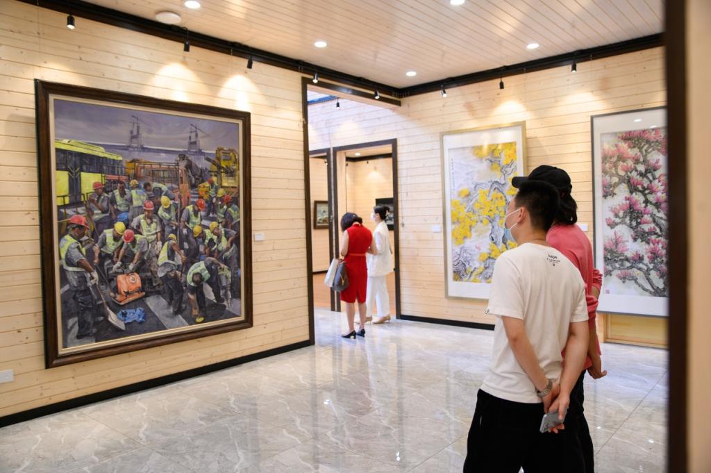 5月20日上午,展览圆满开幕。开幕式特邀中国美术家协会顾问、中国艺术研究院研究员、博士生导师、广东省美术家协会名誉主席许钦松,广州市美术家协会主席、粤港澳大湾区美术家联盟主席汪晓曙,广东技术师范大学美术学院院⻓、粤港澳大湾区美术家联盟副主席刘颖悟,广州美术学院教授、广东省政协书画院副院长张弘,广东工业大学艺术学院教授、粤港澳大湾区油画艺委会副主任张洪亮,广东外语外贸大学教授陈建平、王桂珍,共青团广东省委统战联络部副部长、广东省青年联合会副秘书长陈飞,香港大学珠三角校友会会长李爱国,香港华菁会副主席田斌、郭齐飞,香港华菁会深圳分会会长周远志,香港华菁会副秘书长杨田田,广东省潮州商会秘书长许志贤等领导嘉宾莅临开幕式现场指导。开幕式上,“粤港澳大湾区美术家联盟广州新华学院美育基地”完成挂牌,落户广州新华学院霖霖书院。许钦松、汪晓曙、周云、刘婉莉(字霖霖)等领导嘉宾共同为基地揭牌。接下来,学校将依托该美育基地的丰富资源,为广大新华师生带来形式内容多样、品位高雅的美育活动。