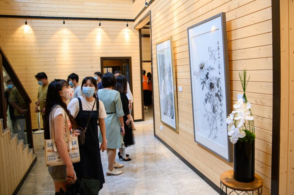 开幕式后,领导、嘉宾和师生们纷纷移步霖霖书院内观展。展馆内,墙壁上陈列的书画作品吸引着来宾细细欣赏。师生们结伴而行或独自前行,时而驻足品读、时而轻声交谈,“沉浸式”感受艺术的魅力,感悟艺术作品的“灵魂”。