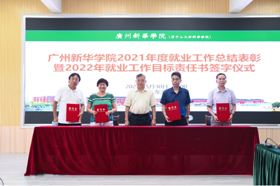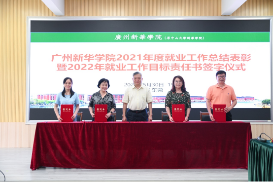 为表彰先进,树立典型,进一步稳就业、保就业、促就业,5月30日,广州新华学院(以下称“我校”)于东莞校区召开2021年度就业工作总结表彰暨2022年就业目标责任书签字仪式会议。我校校长王庭槐,党委书记周云,党委副书记、副校长蓝永金等学校党政领导,各学院(直属系)院长、书记,学生处处长,各学院(直属系)党总支副书记,学生处学生就业指导中心全体人员,2022届毕业生辅导员、班主任等参与会议。会议由学生处副处长刘艳主持。