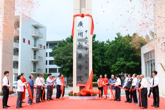 2021年2月,中山大学新华学院转设更名为广州新华学院,图为新校名揭牌