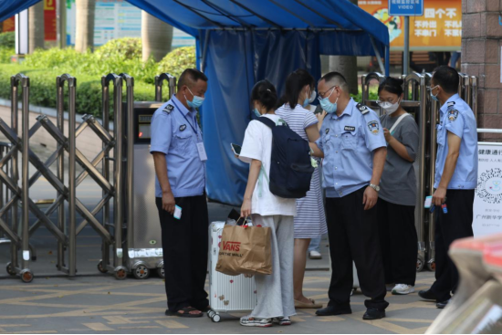 校门处,同学们按要求依次出示粤康码、行程卡与48小时核酸阴性证明,并通过扫描ixh健康码、测温等流程有序进入校园。