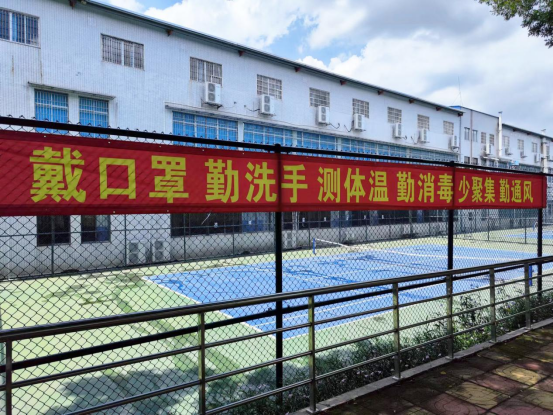 学校还在校门口、校道旁设置了暖心展板和横幅,欢迎同学们“回家”,叮嘱同学们做好防疫工作。