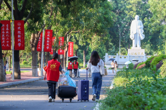 随着报到人数的增加,校园内越来越多志愿者们忙碌的身影。他们在接站点、校门口、报到点、食堂等处提供指引和帮助,帮助新同学迅速熟悉校园,适应大学生活。