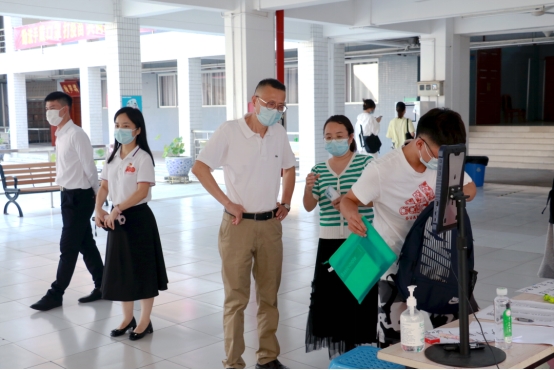 我校党委书记郝登峰(左三)在迎新现场指导工作
