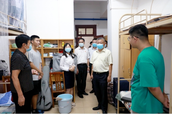 我校校长王庭槐(右二)与纪委书记杨卫华(左四)、广州校区分管校领导一同走访新生宿舍并向新生致以慰问