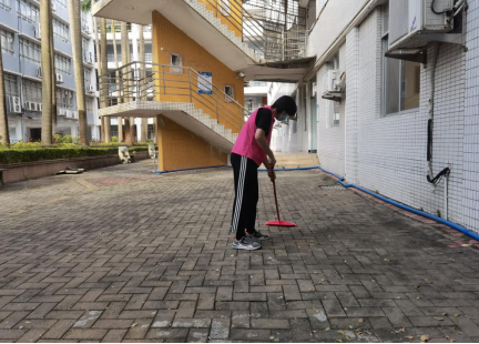 健康学院凌霄志愿服务队志愿者打扫教学楼