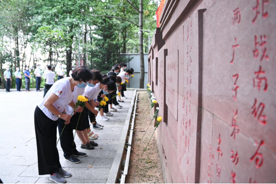 2022年9月30日,是我国第九个烈士纪念日。全体党员同志们神情肃穆,缓步拾级而上,将寄托着敬意和哀思的黄白菊花摆放在烈士墙前,驻足沉思,并鞠躬默哀,追思为民族独立、人民解放英勇牺牲的民族英雄与革命先烈。